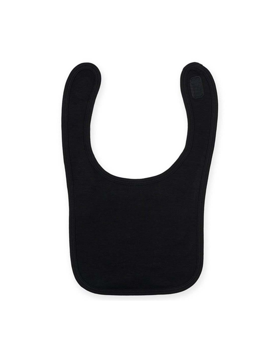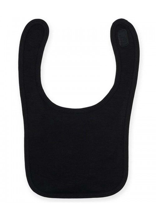 - Children's bib with double fabric and binding detail around edge and hook and loop fastening fastening at back neck
