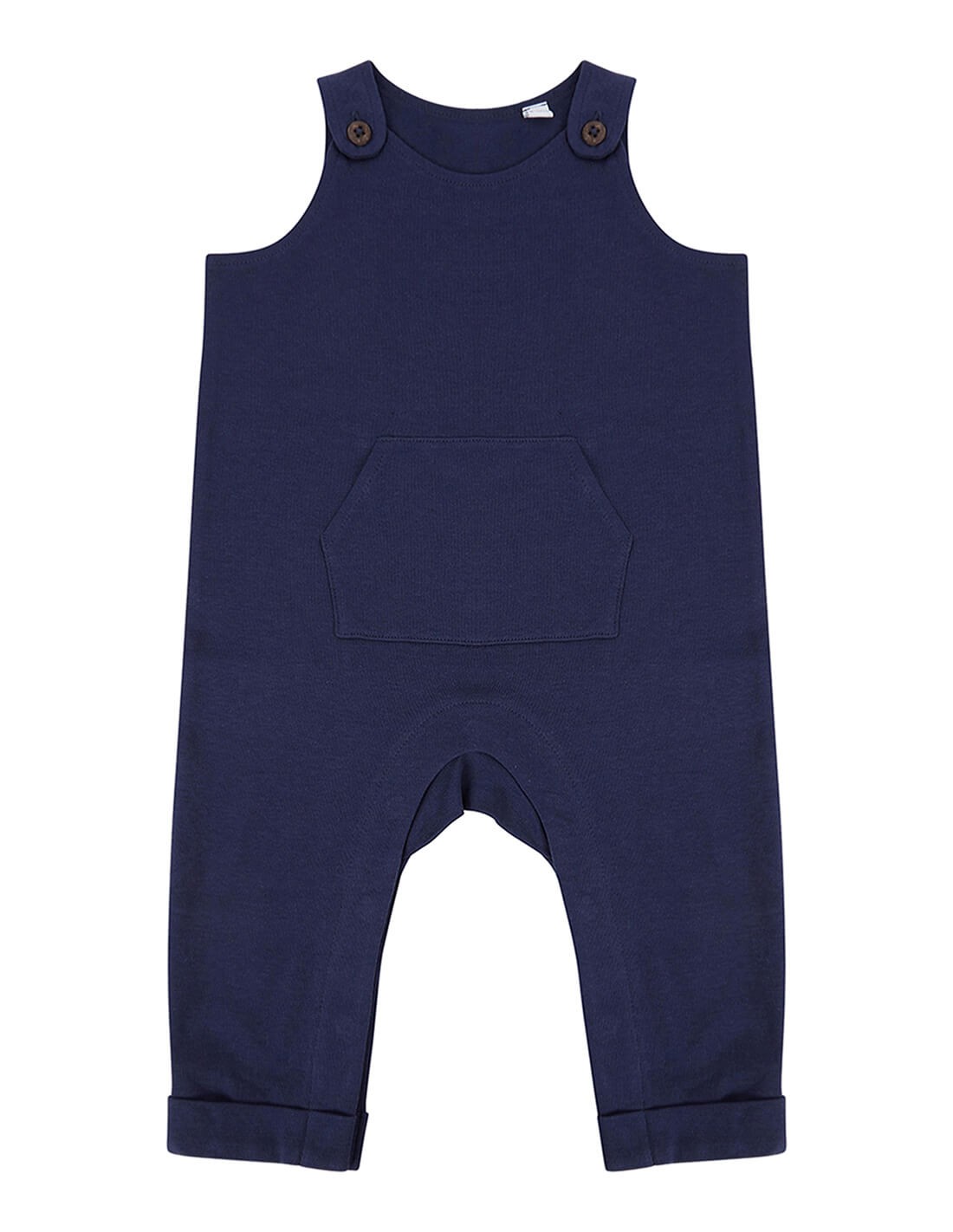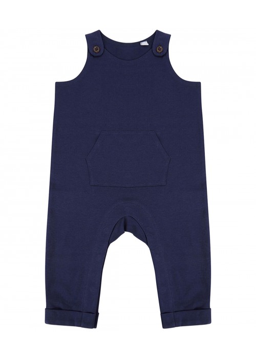 - Cotton dungarees made in sustainable fabric with horn-button shoulder fastening