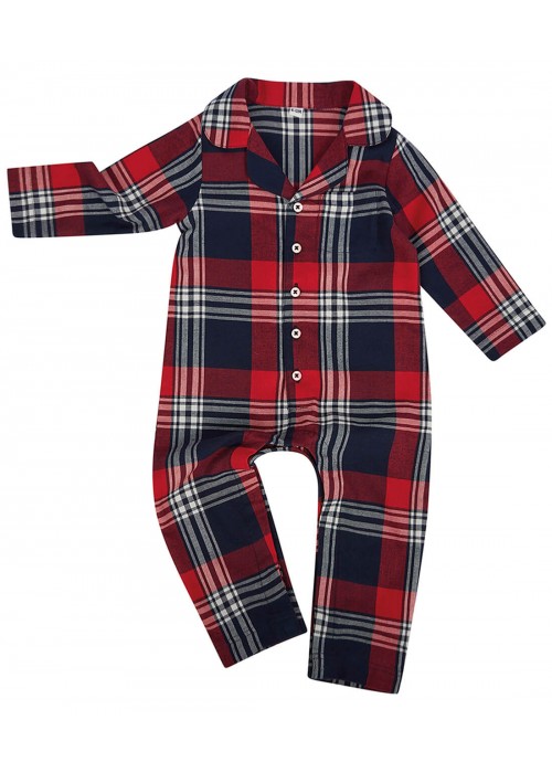 - Babies’ all-in-one tartan pyjamas with self-fabric chest pocket