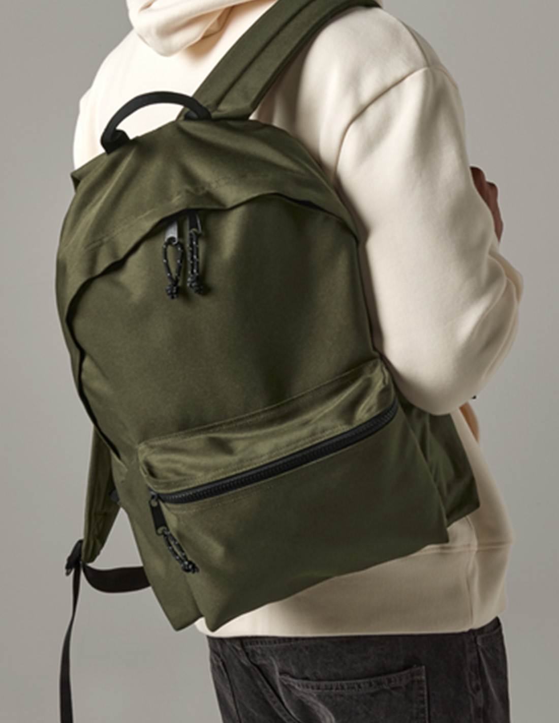 - Zippered front pocket