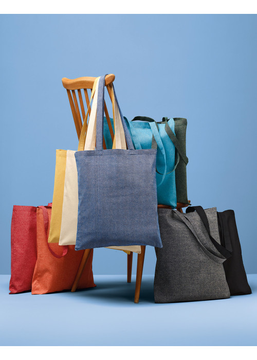 - Made from post-consumer recycled cotton, this tote can be carried over the shoulder or by hand