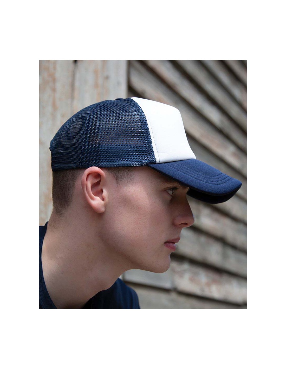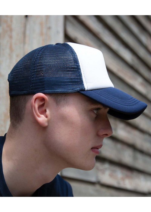 - White front panel with colour contrast mesh and peak