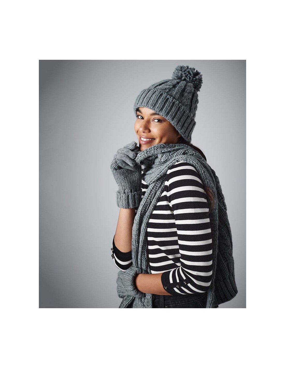 Beechfield Cable knit melange beanie