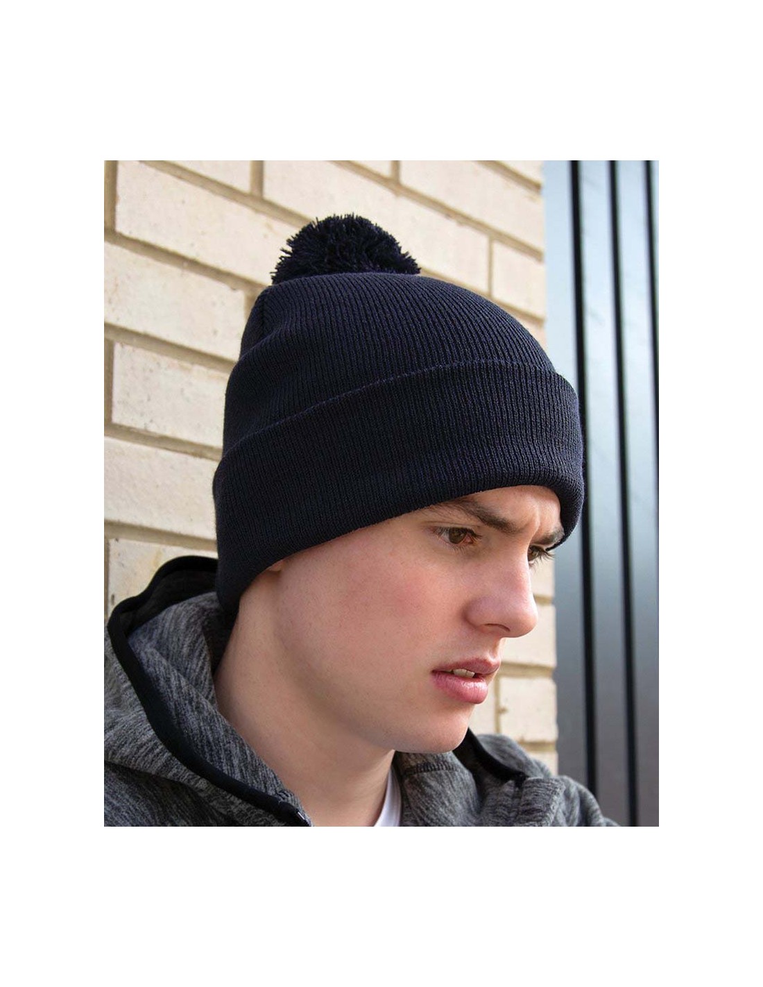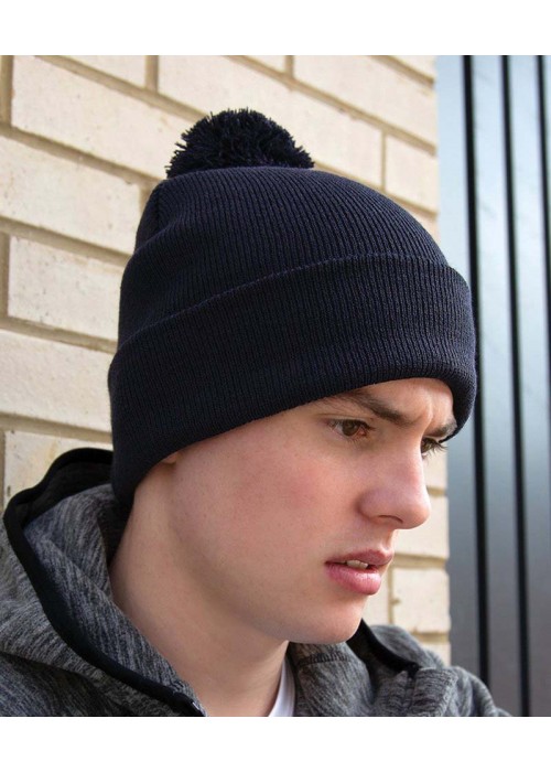- Heavyweight, double thickness knitted beanie with deep fold cuff and pom pom decoration