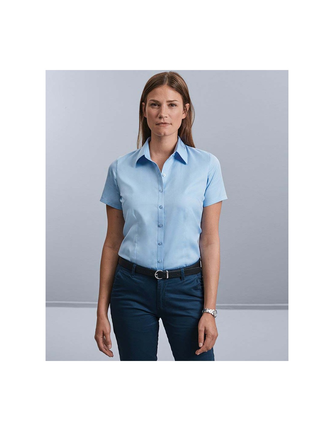 Russell Collection Women's short sleeve herringbone shirt