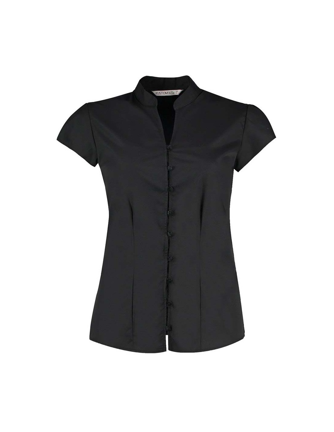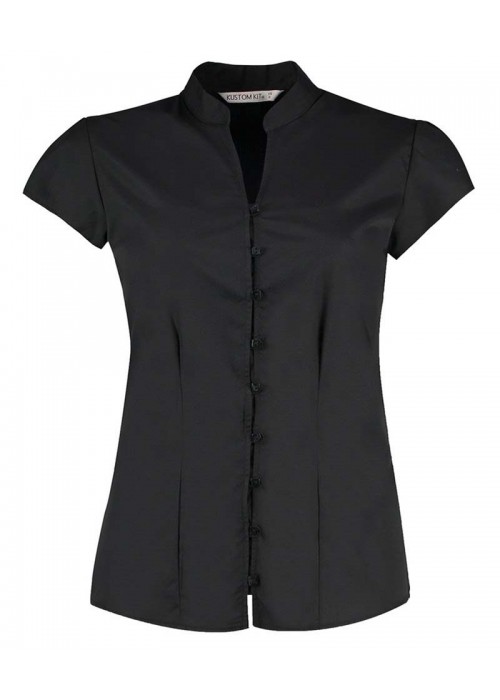 Kustom Kit Women's continental blouse mandarin collar cap sleeve (tailored fit)