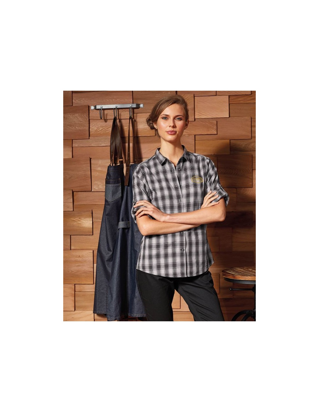- A women's long sleeve semi-fitted shirt with multi-coloured contrast check pattern