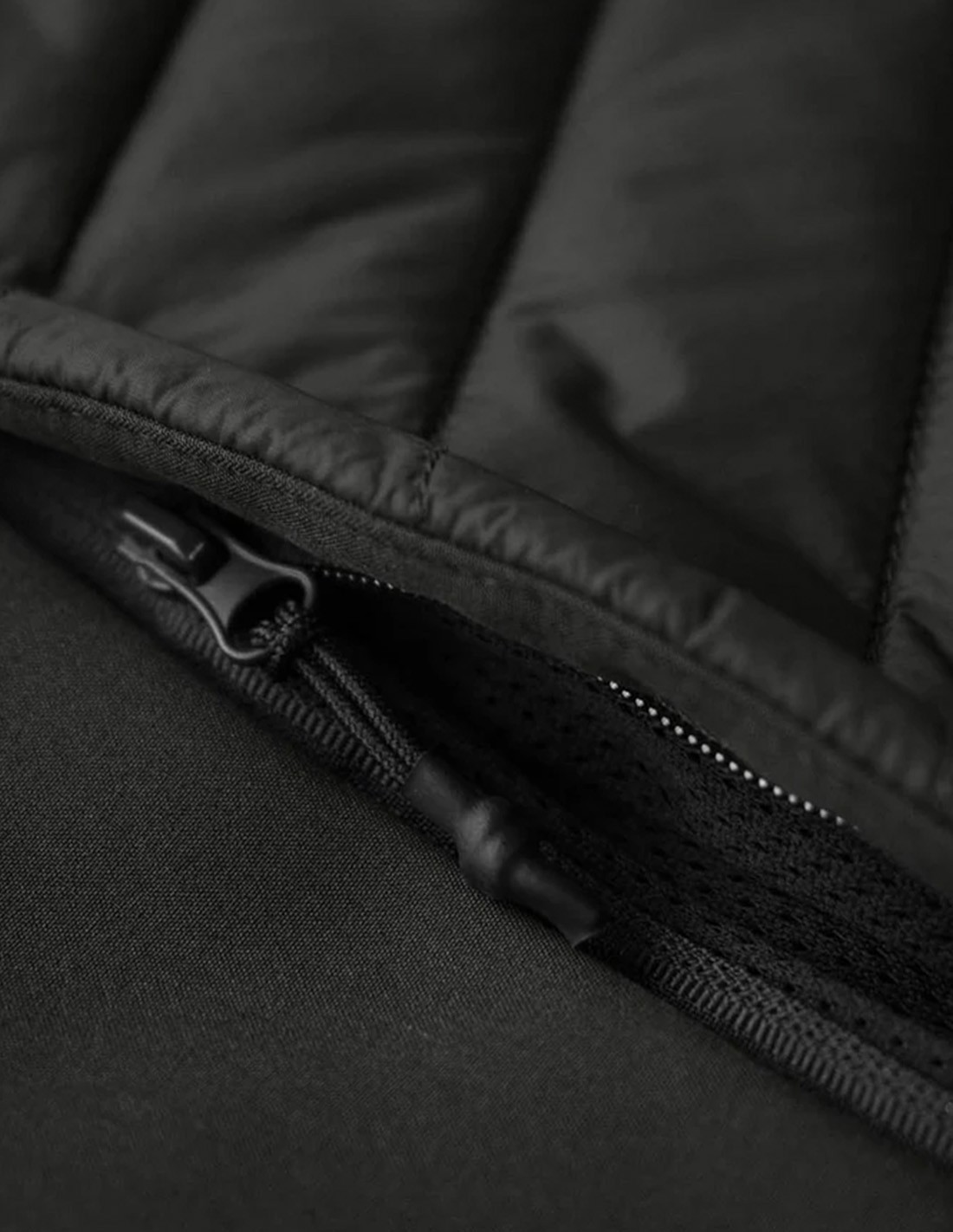 Outer fabric: 100% Recycled nylon - 95% Recycled softshell, 5% Elastane. Padding: 100% Polyester; Sorona® Aura. (AURA insulation is made from 30% Bio-based material)