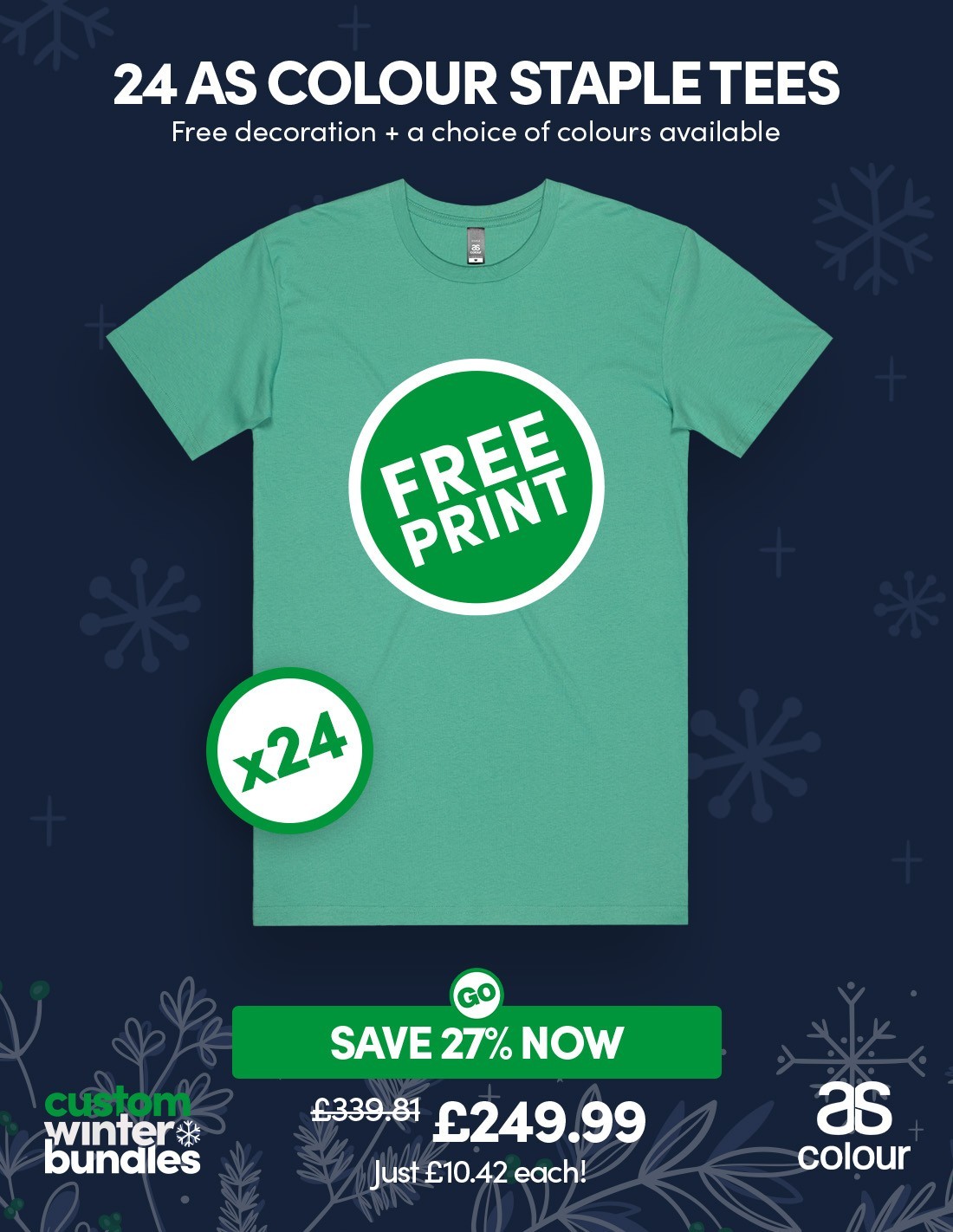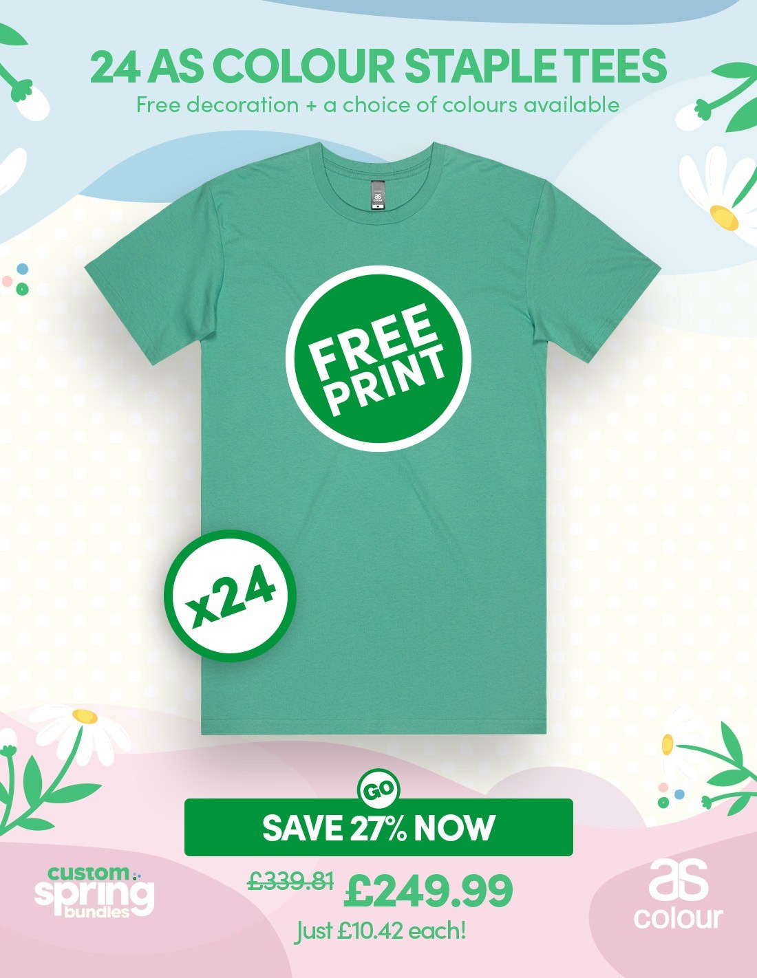 Bundle: 24 x AS Colour Staple Tees with Free Printing