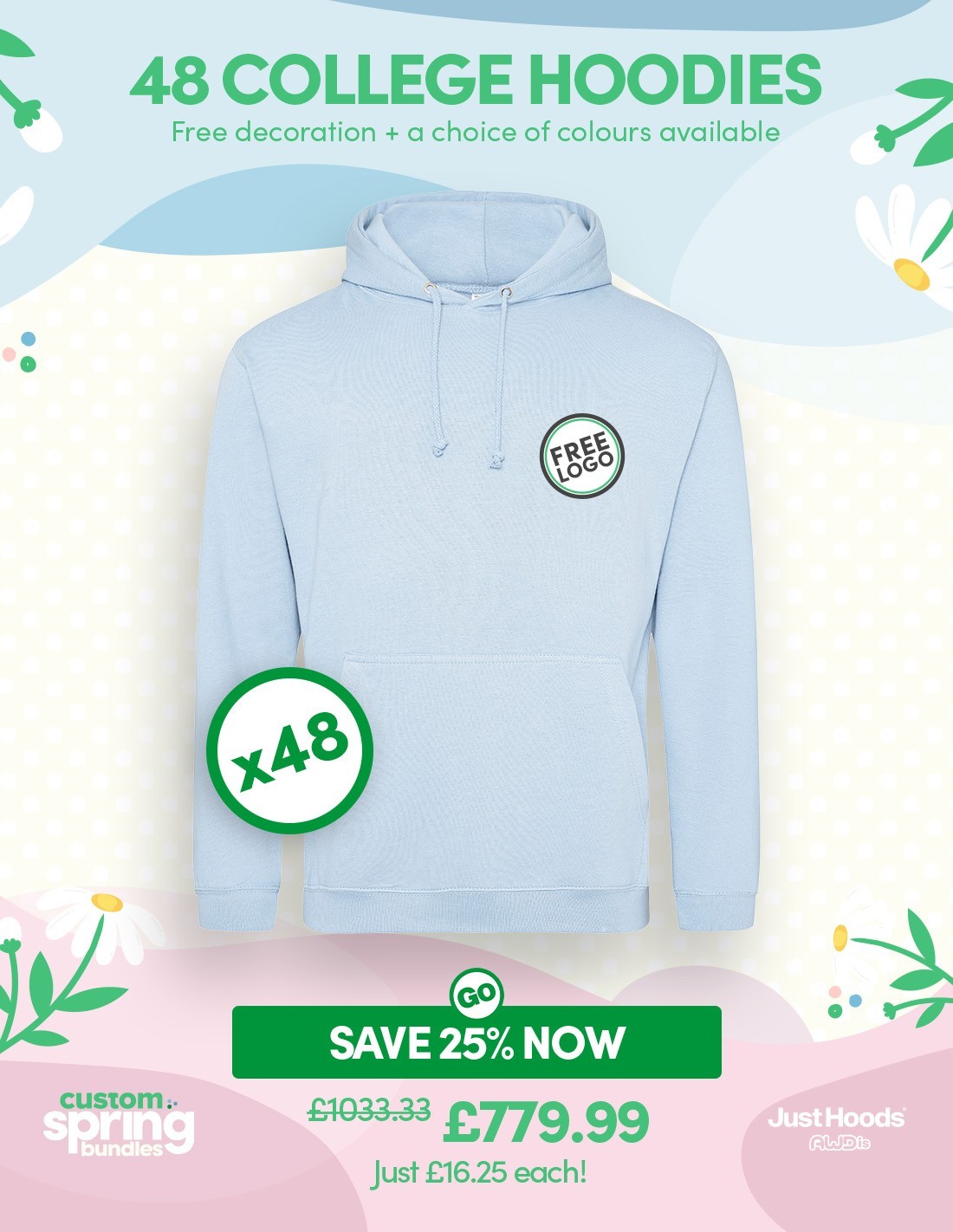 Bundle: 48 x College Hoodie with Free Logo