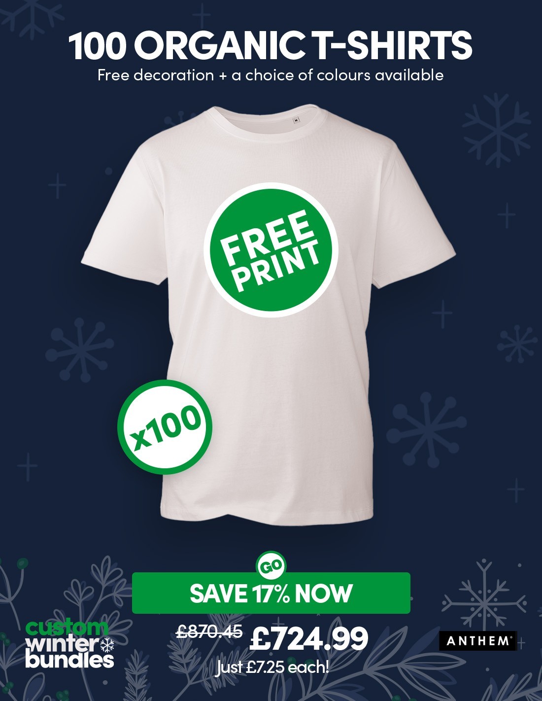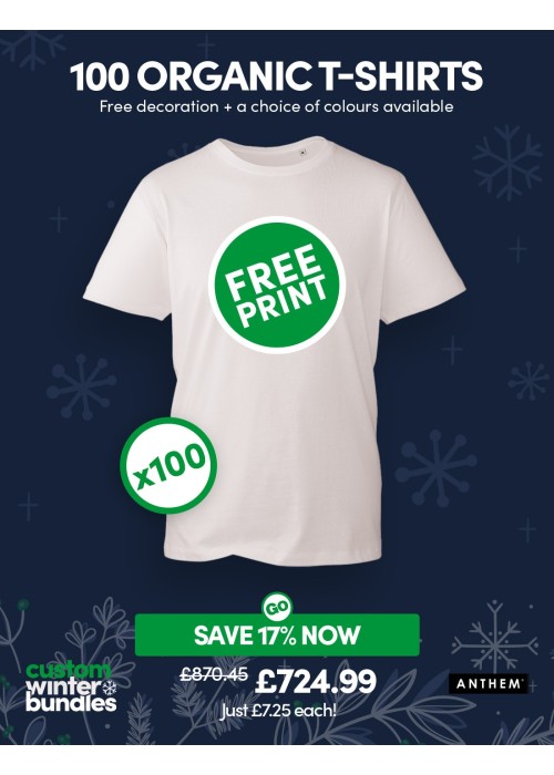 Bundle: 100 Anthem Organic T-Shirts with Free Printing