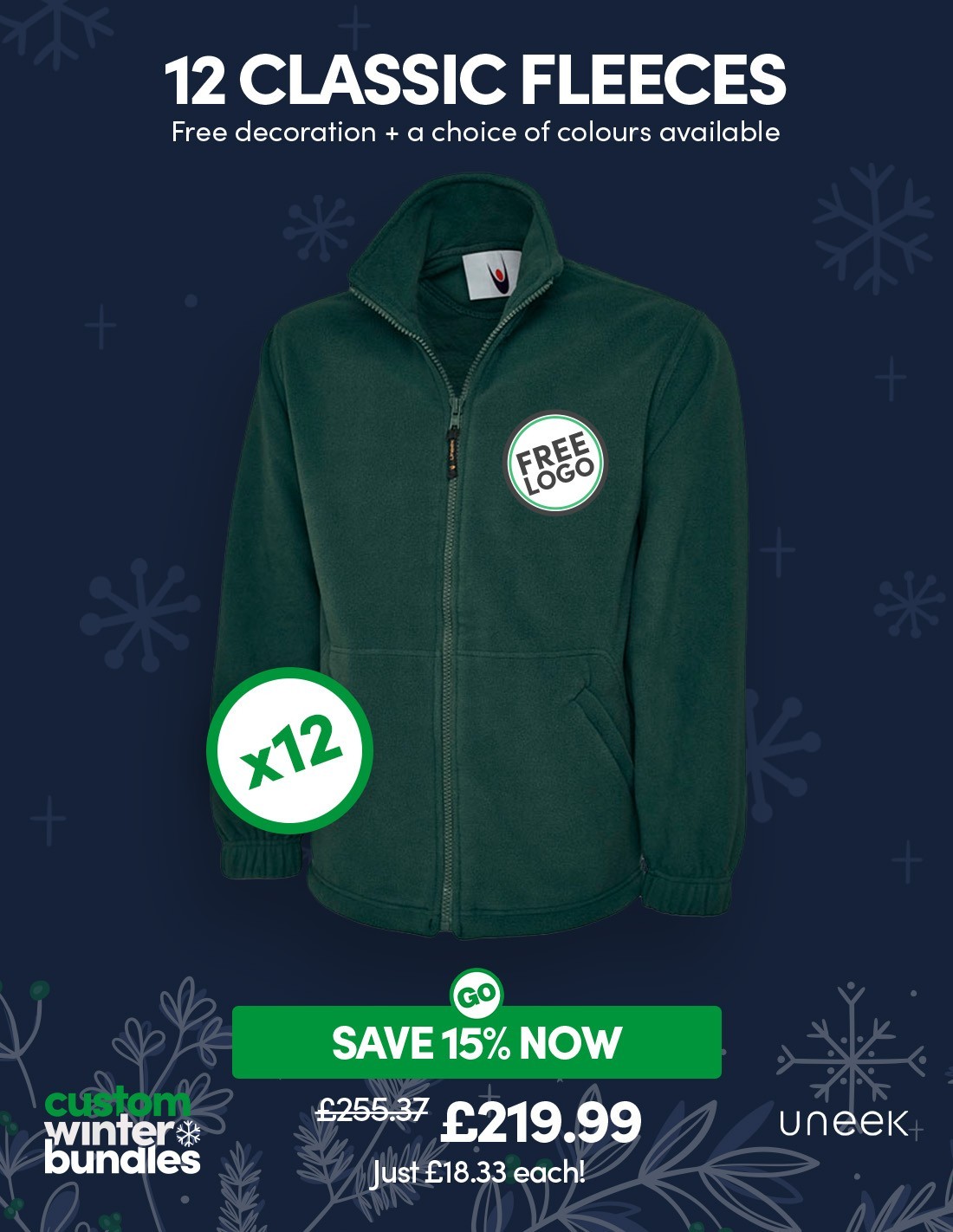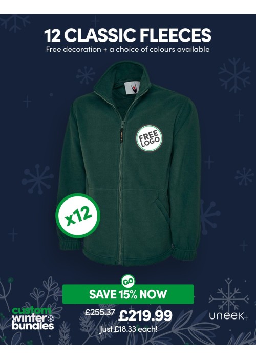 Bundle: 12 Classic Full Zip Fleece Jackets with Free Logo