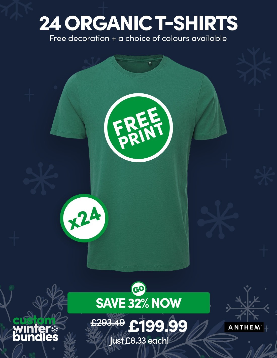 Bundle: 24 Anthem Organic T-Shirts with Free Printing