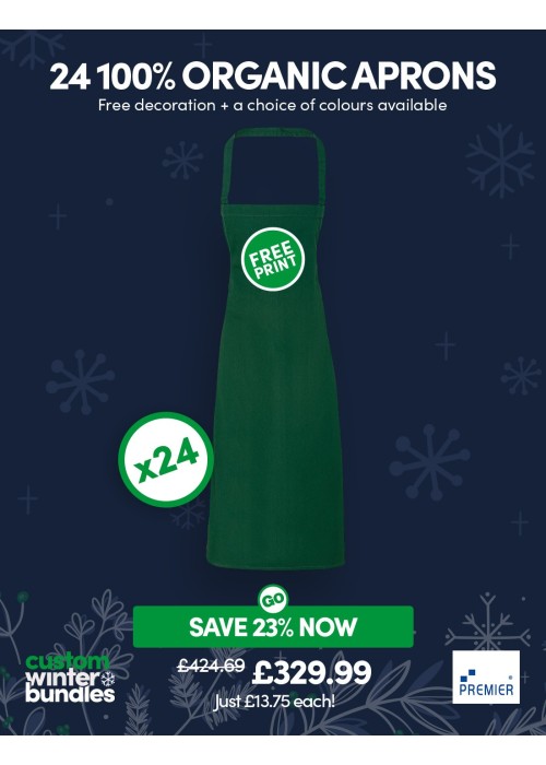 Bundle: 24 x 100% Organic Cotton Aprons with FREE Logo