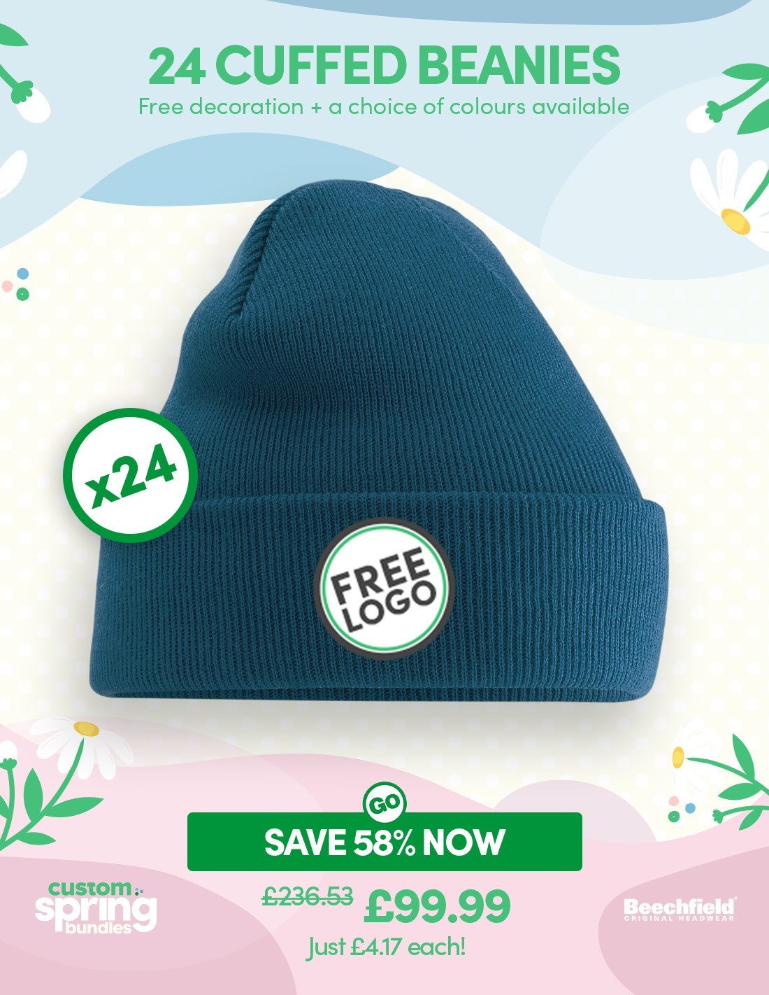 Bundle: 24 x Cuffed Beanie with FREE Logo