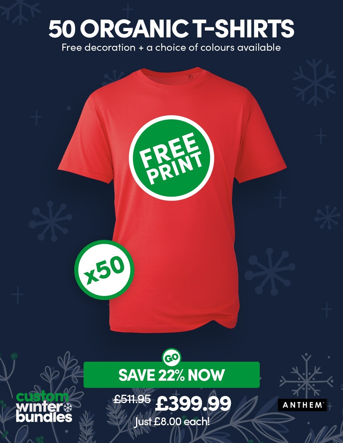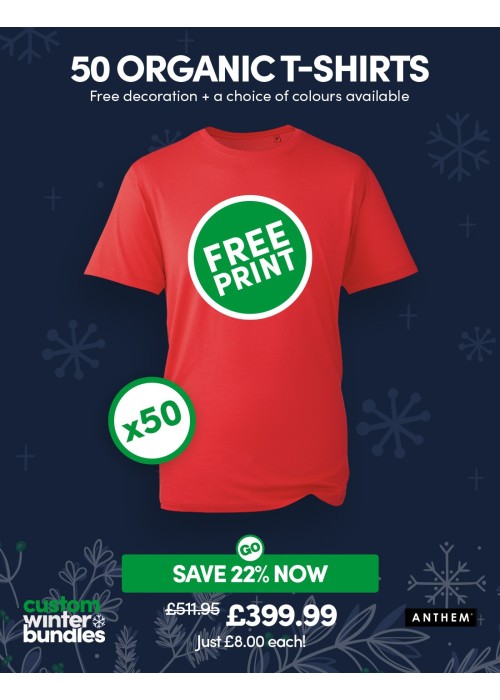 Bundle: 50 Anthem Organic T-Shirts with Free Printing