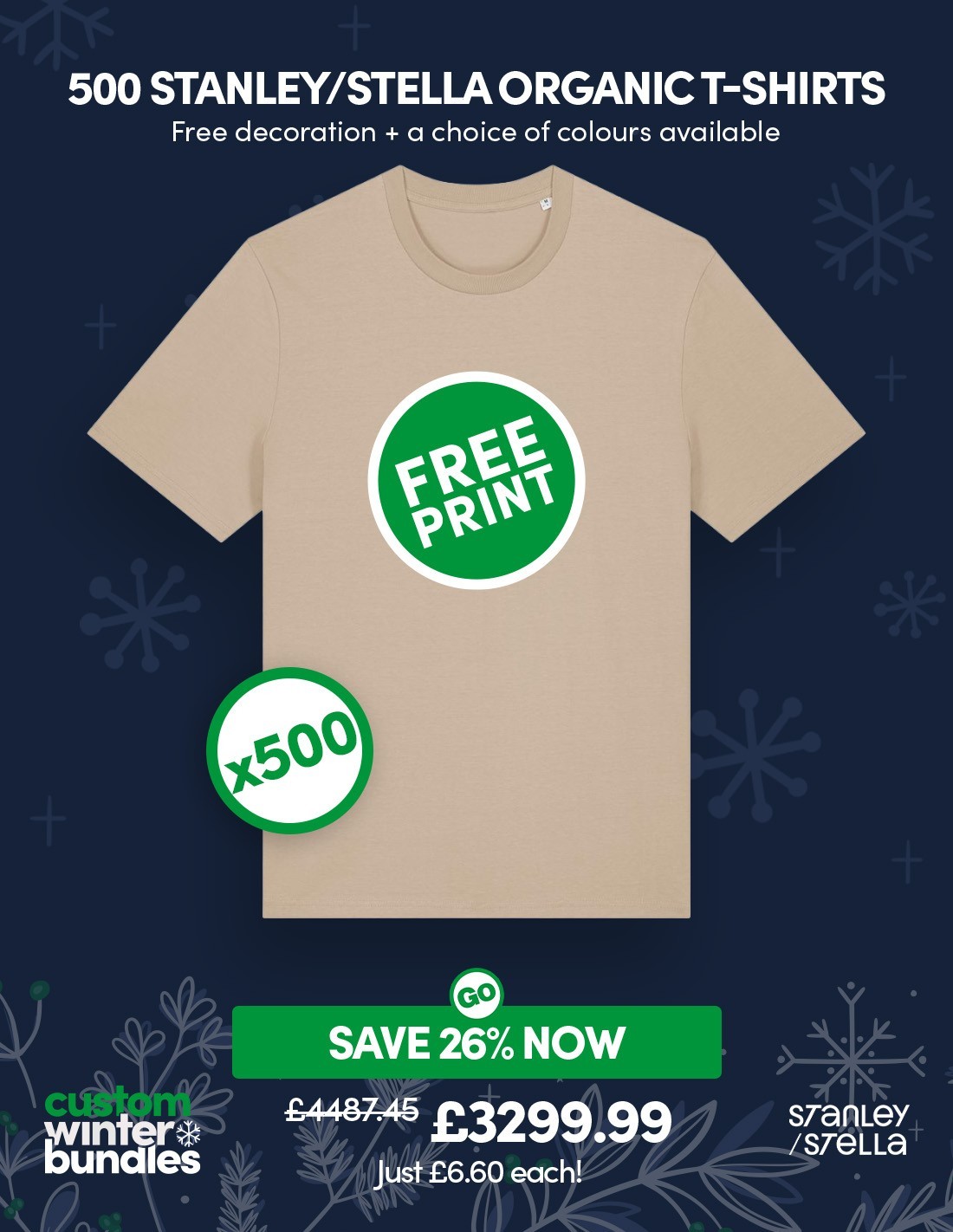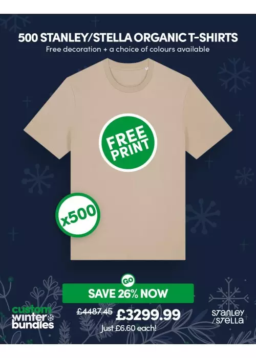 Bundle: 500 x Stanley/Stella Organic T-Shirts with Free Printing