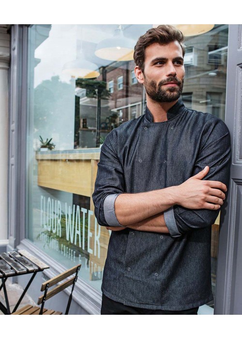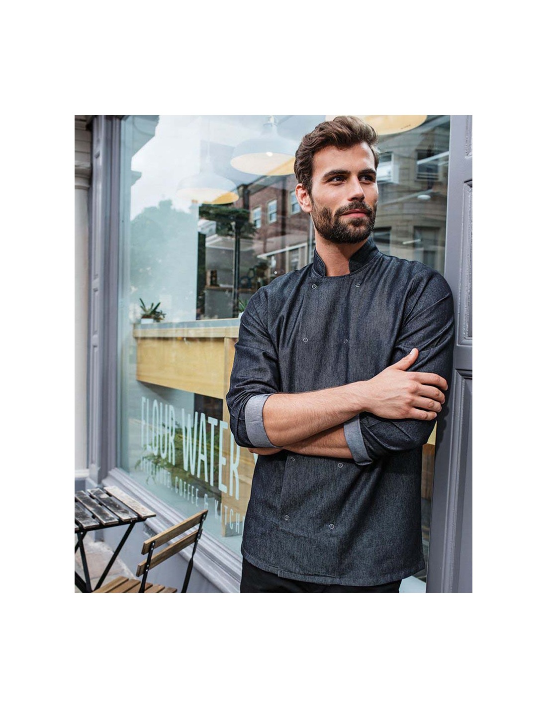 - Long sleeve unisex chef's jacket with a cross over fastening at the front