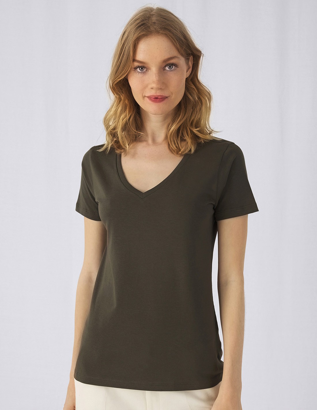 - 100% Organic Cotton V-neck TEE by B&C fits perfectly, featuring a V-neck, short sleeves and side seams