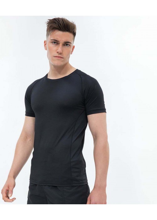 - Slim fit t-shirt, 2 piece sports crew neck, shaped raglan sleeves, mesh side panels and back yoke