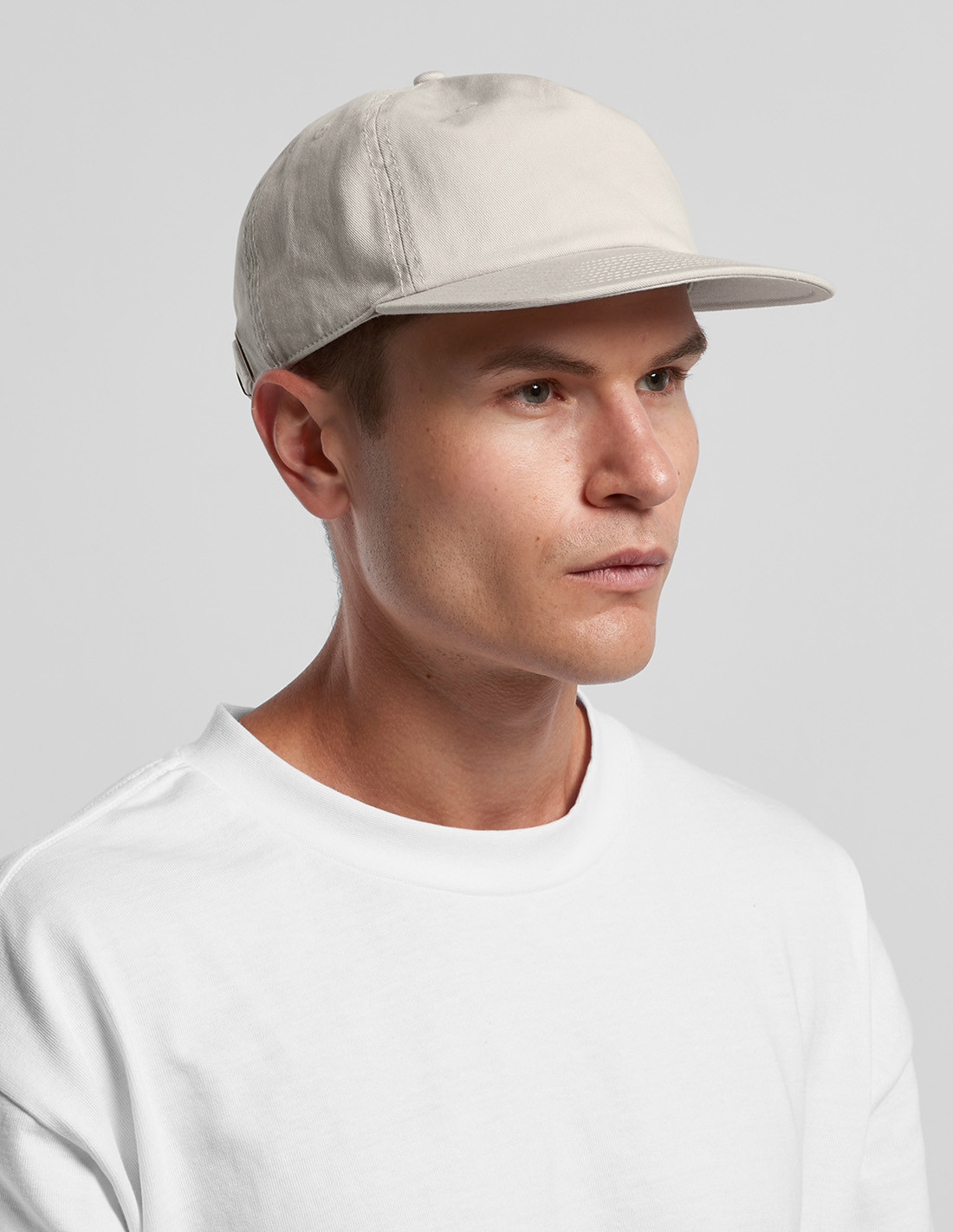 - Mid profile, five panel cap, internal mesh structure support, flat peak