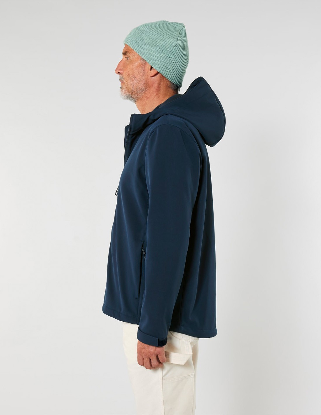 - Men’s hooded softshell jacket, medium fit, with set-in sleeve and a high collar with panelled hood