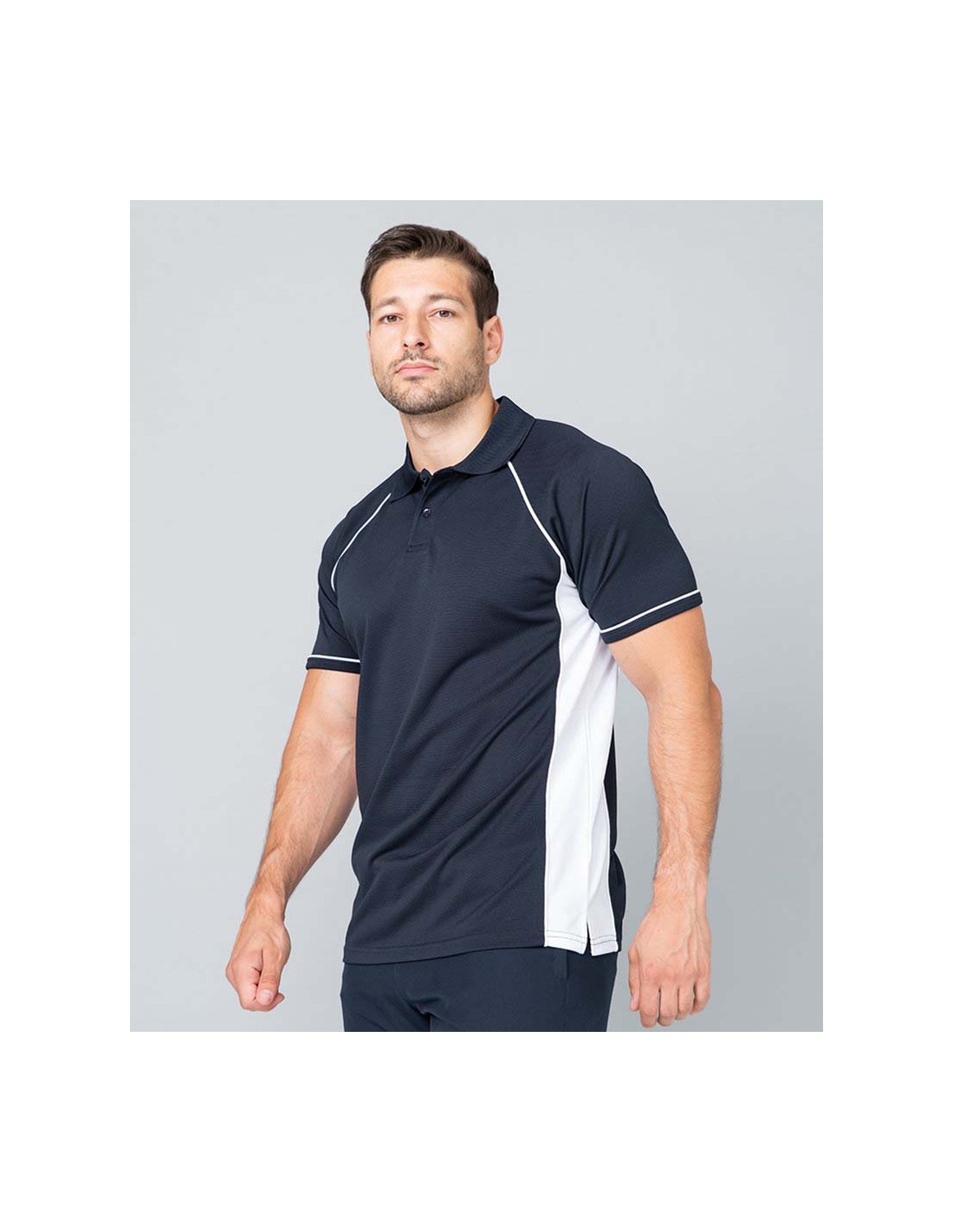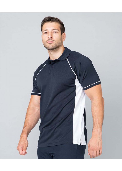 - Pique polo shirt with contrast panelling and piping on side panels