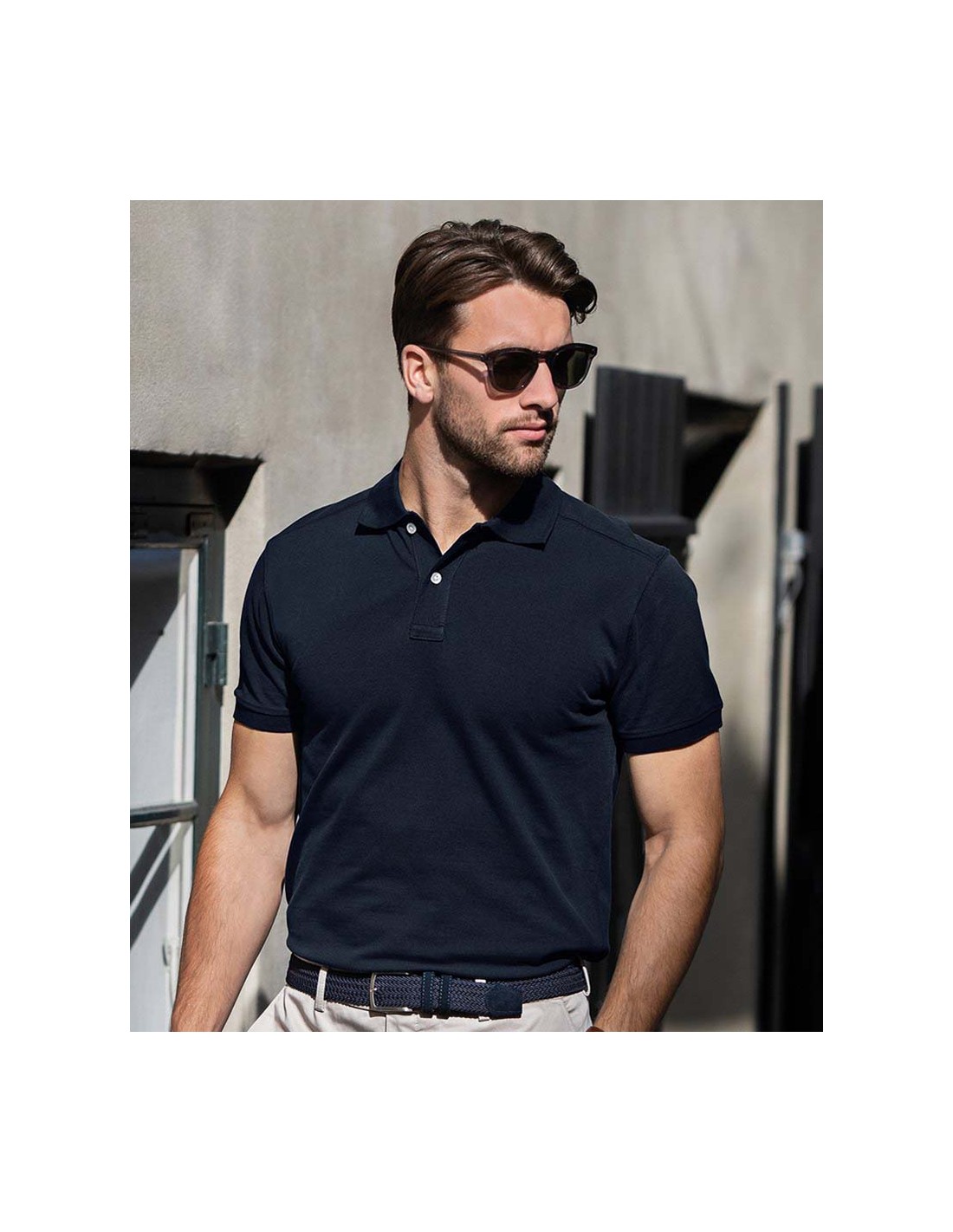 - Tone in tone badge above hem, left side of polo