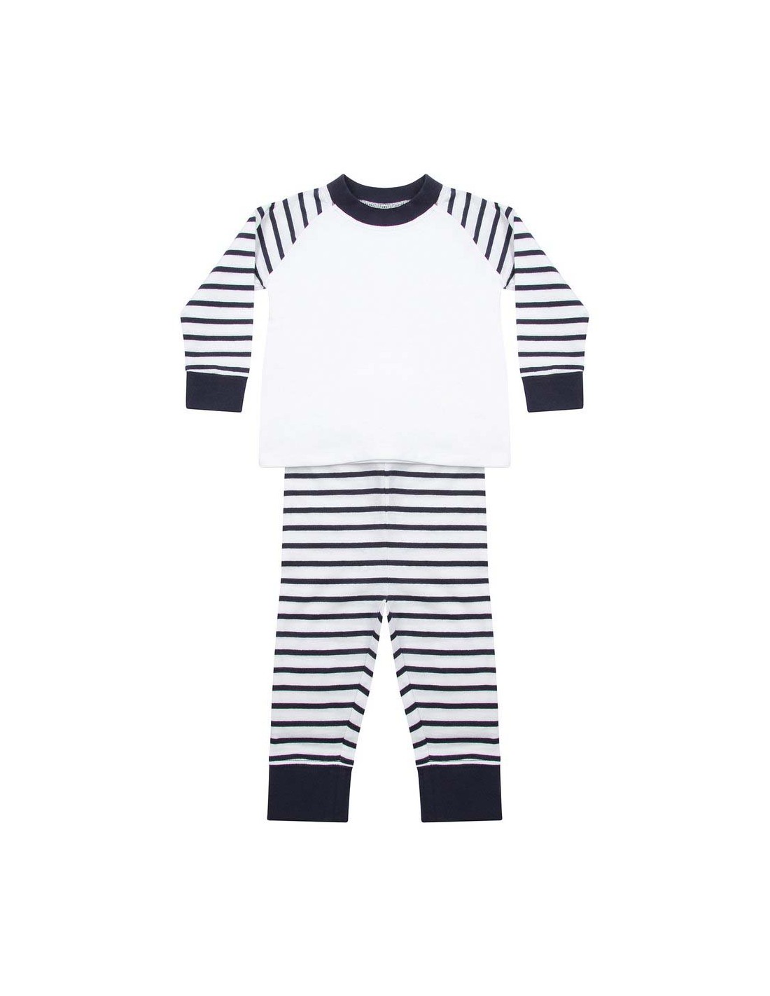 - Striped pyjamas in 100% cotton single Jersey with plain 100% polyester front and back body panels suitable for sublimation printing