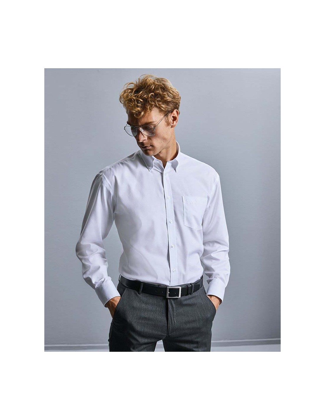 - The classic gents shirt cut with semi-cut away button down collar and chest pocket