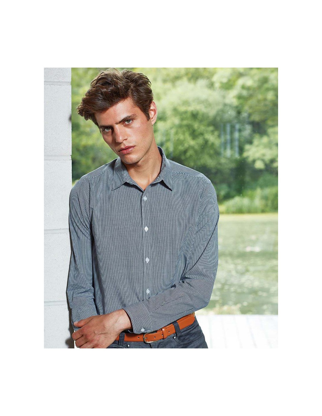 Premier Microcheck (Gingham) long sleeve cotton shirt