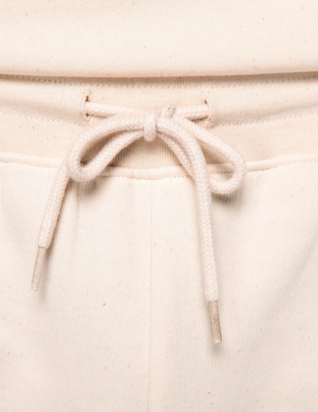 - Ribbed waistband with buttonhole eyelets and drawcord