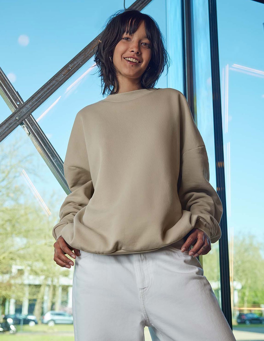 - Dropped shoulder and oversized feel for a relaxed fit
