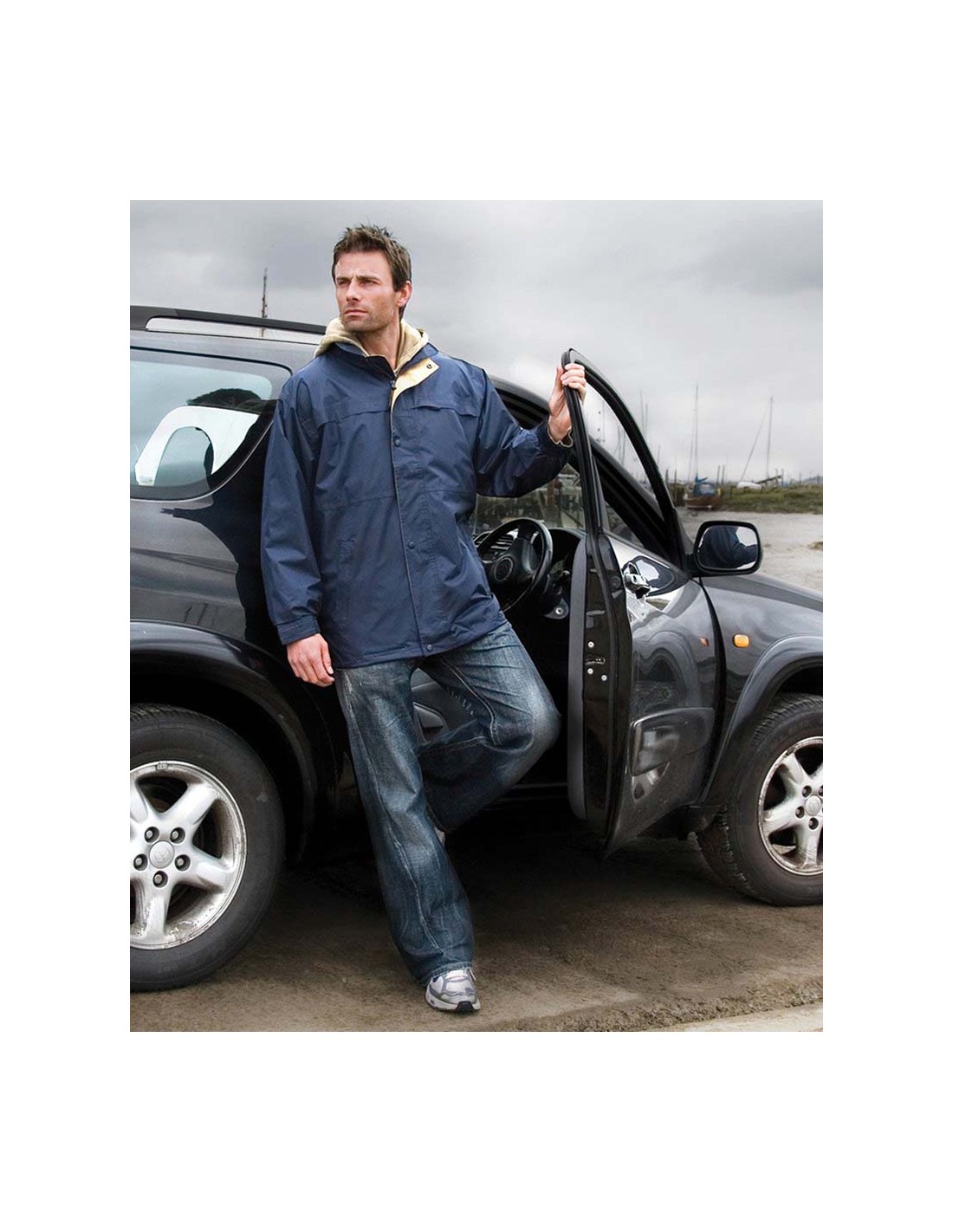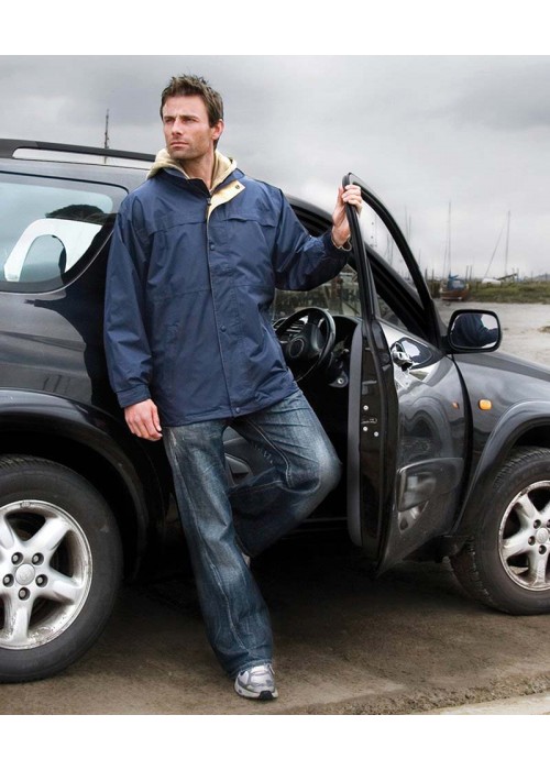 Outer: 200gsm StormDri polyester with PVC coating. Lining upper body: 100% Polyester mesh. Lower body and sleeves: 190T Polyester taffeta