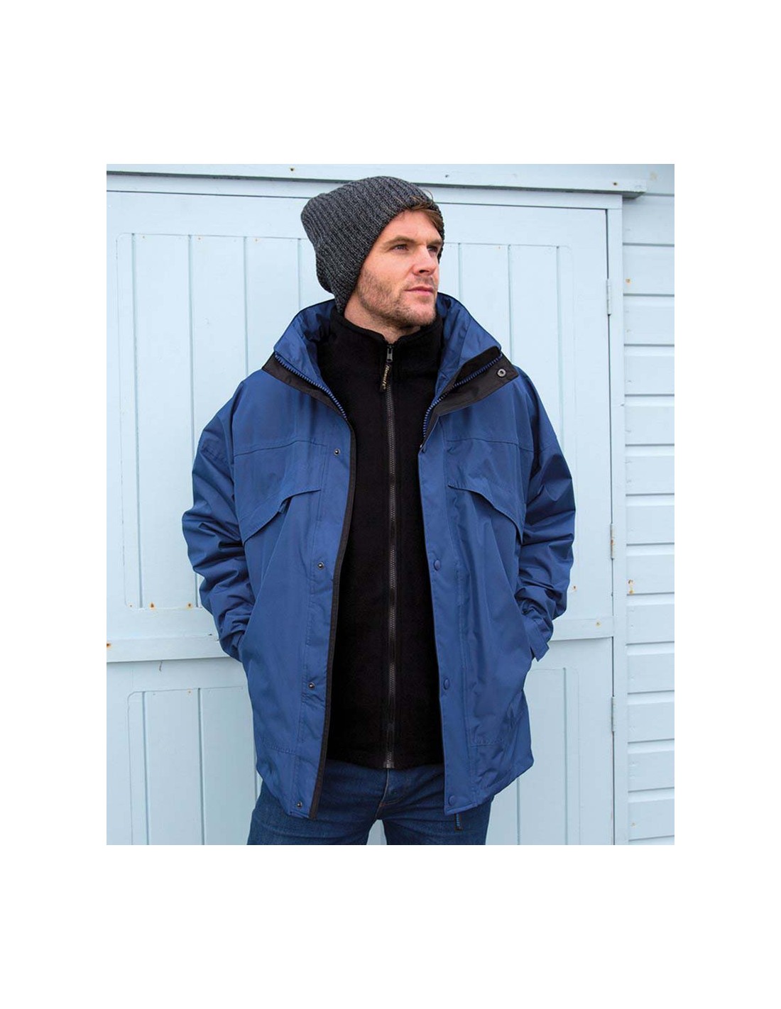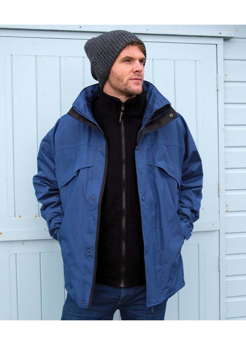 Outer: 230gsm StormDri Polyester with PVC coating. Lining: 100% Polyester. Inner jacket: 280gsm 100% Polyester Active Fleece by Result®